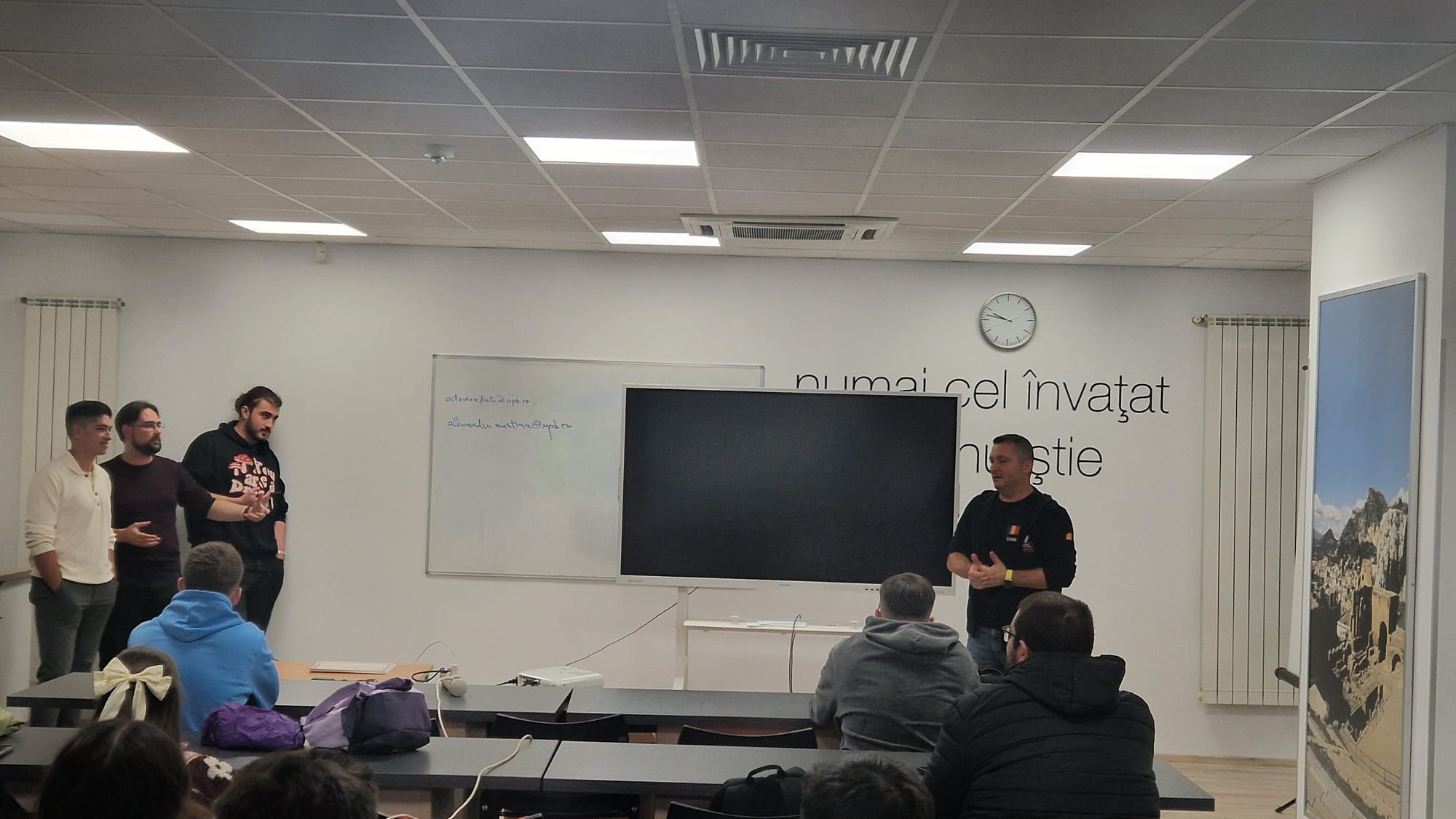 La instruirea teoretică și practică a studentilor au contribuit și colegii noștri Dan Damian, Head of Core IT BSS și Cosmin Șchioapă, Technology Data Analytics Manager, prin prelegerile lor despre modul în care este integrat un model LLM pentru recunoașterea vorbirii (STT) în voicebot-ul Orange Romania, respective despre cum se utilizează un model on-prem LLM pentru procesarea imaginilor (Vision LLM) în diverse aplicații din cadrul Orange Romania.