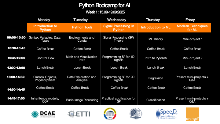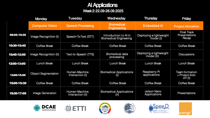 În perioada 15–26 septembrie 2025, participanții au parcurs un adevărat traseu de învățare: de la primele noțiuni de programare în Python, până la dezvoltarea unor aplicații avansate de Machine Learning și Artificial Intelligence. Aceștia au explorat metode fundamentale de învățare automată, au construit și au testat arhitecturi complexe pentru procesarea imaginilor, au descoperit aplicații biomedicale și au pătruns în universul din ce în ce mai influent în procesarea limbajului natural, dedicat Large Language Models (LLMs) și interacțiunii om-mașină, tehnologii care modelează deja viitorul comunicării și al inovației.