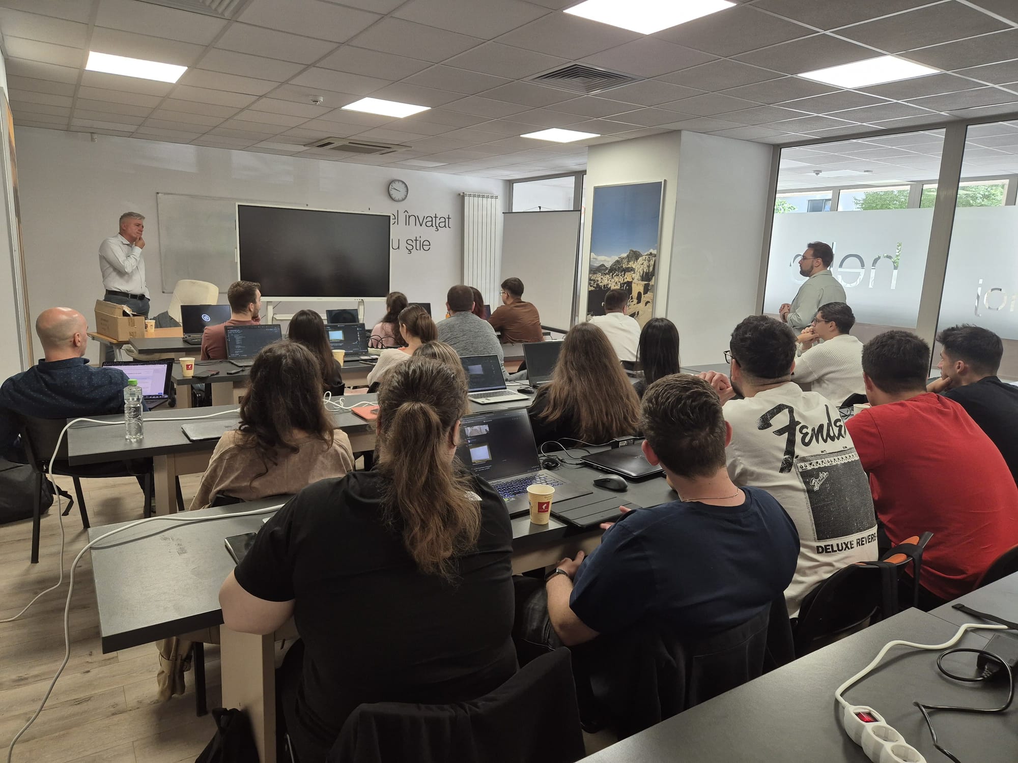 La instruirea teoretică și practică a studentilor au contribuit și colegii noștri Dan Damian, Head of Core IT BSS și Cosmin Șchioapă, Technology Data Analytics Manager, prin prelegerile lor despre modul în care este integrat un model LLM pentru recunoașterea vorbirii (STT) în voicebot-ul Orange Romania, respective despre cum se utilizează un model on-prem LLM pentru procesarea imaginilor (Vision LLM) în diverse aplicații din cadrul Orange Romania.